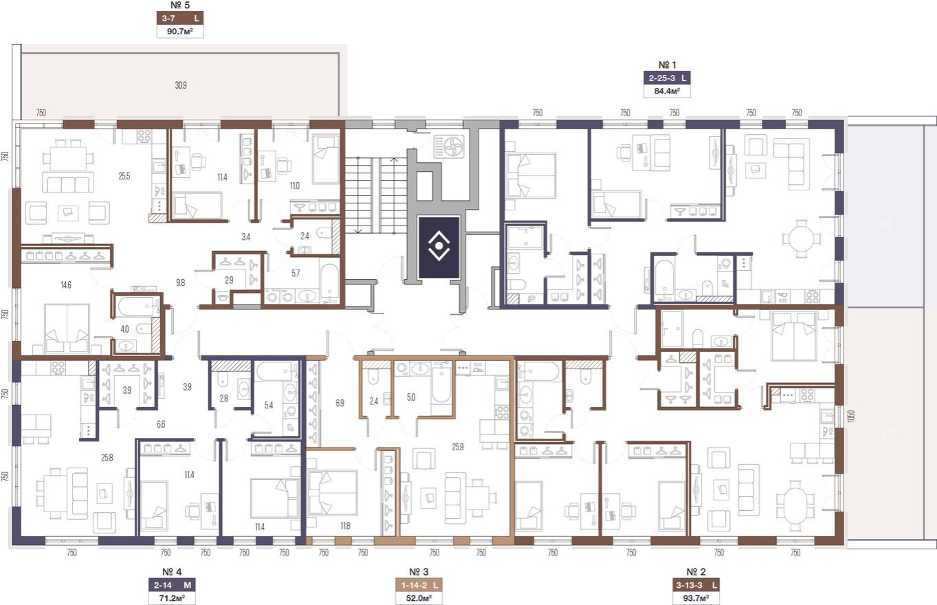 - Всего 517 квартир в 12 секциях для комфортной плотности застройки