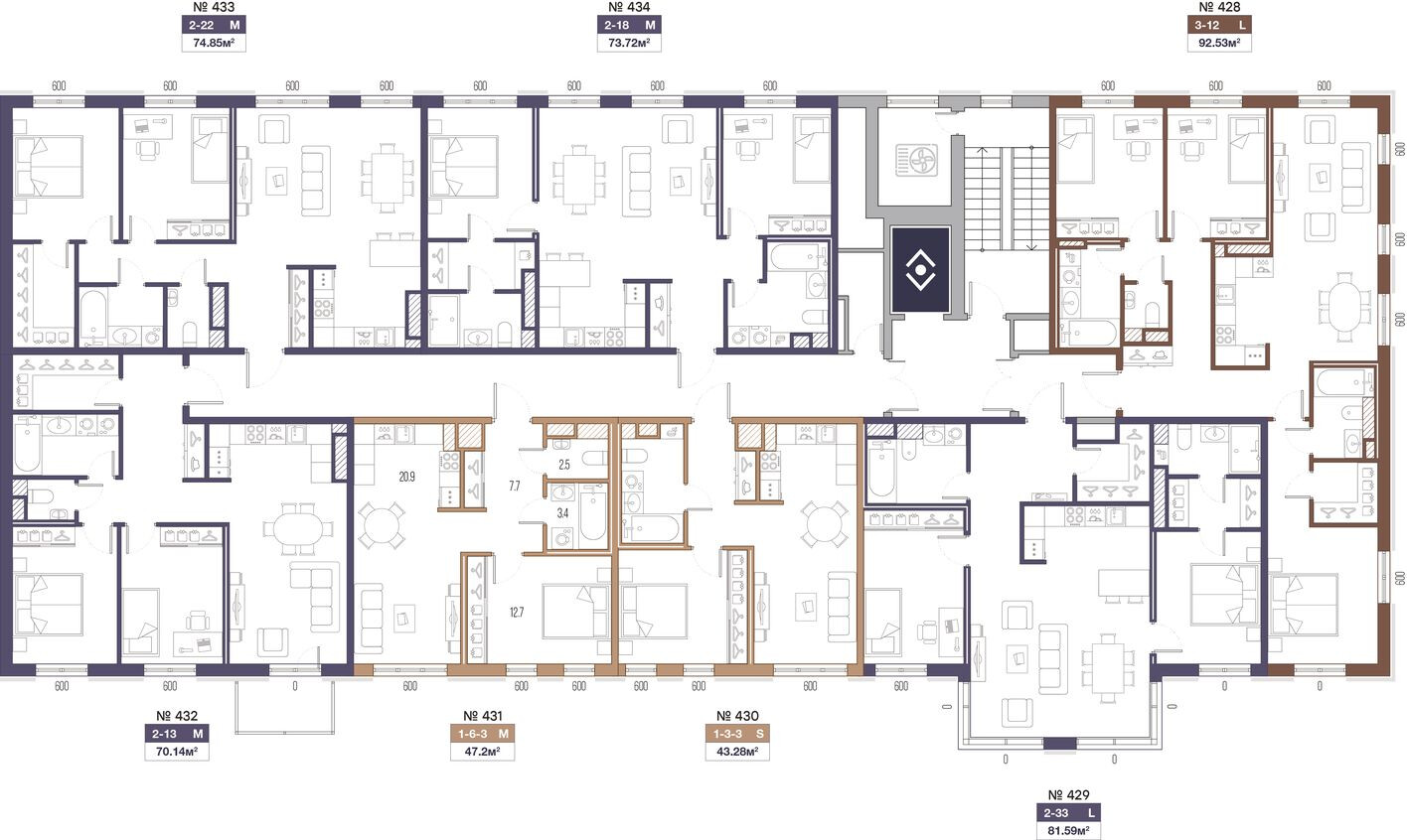 - Всего 517 квартир в 12 секциях для комфортной плотности застройки