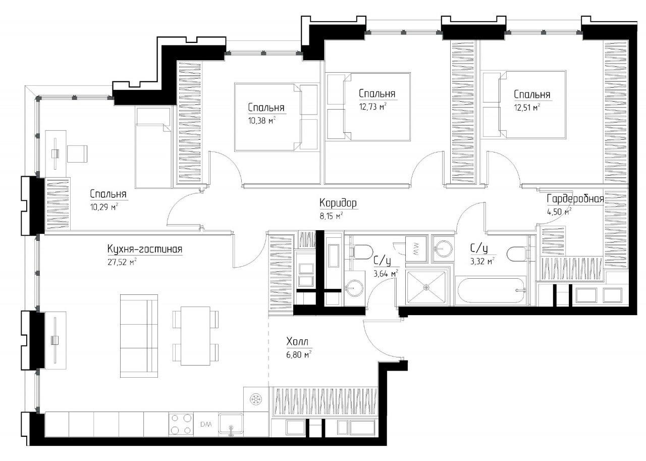 Квартира с 3 спальнями