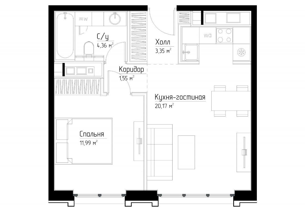 Квартира с 1 спальней