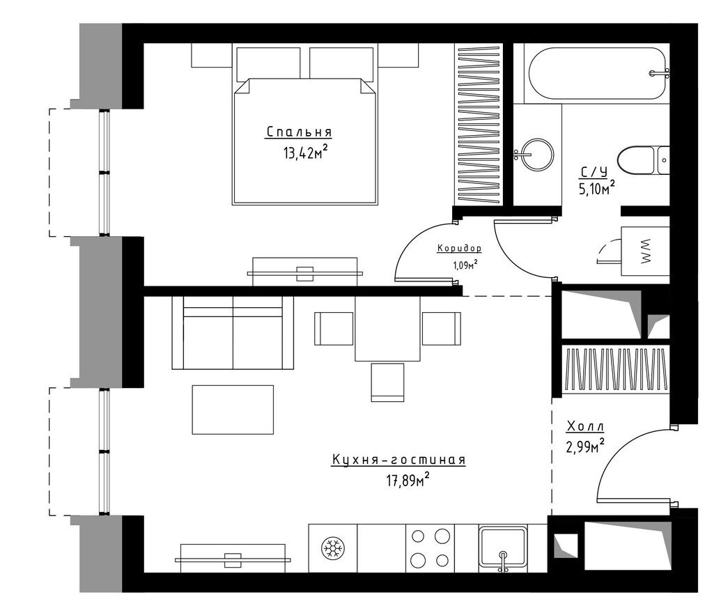 • Разнообразие планировок от студий до трёхкомнатных квартир с высоким комфортом.