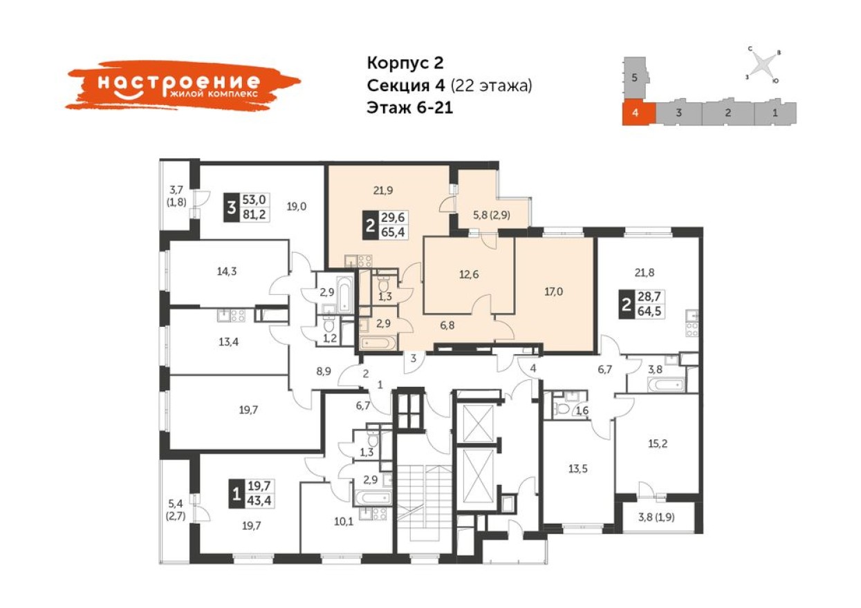 2к. квартира, 65.4 м² в ЖК Настроение, Москва — цена ₽ 22 890 000.00 | RedCat