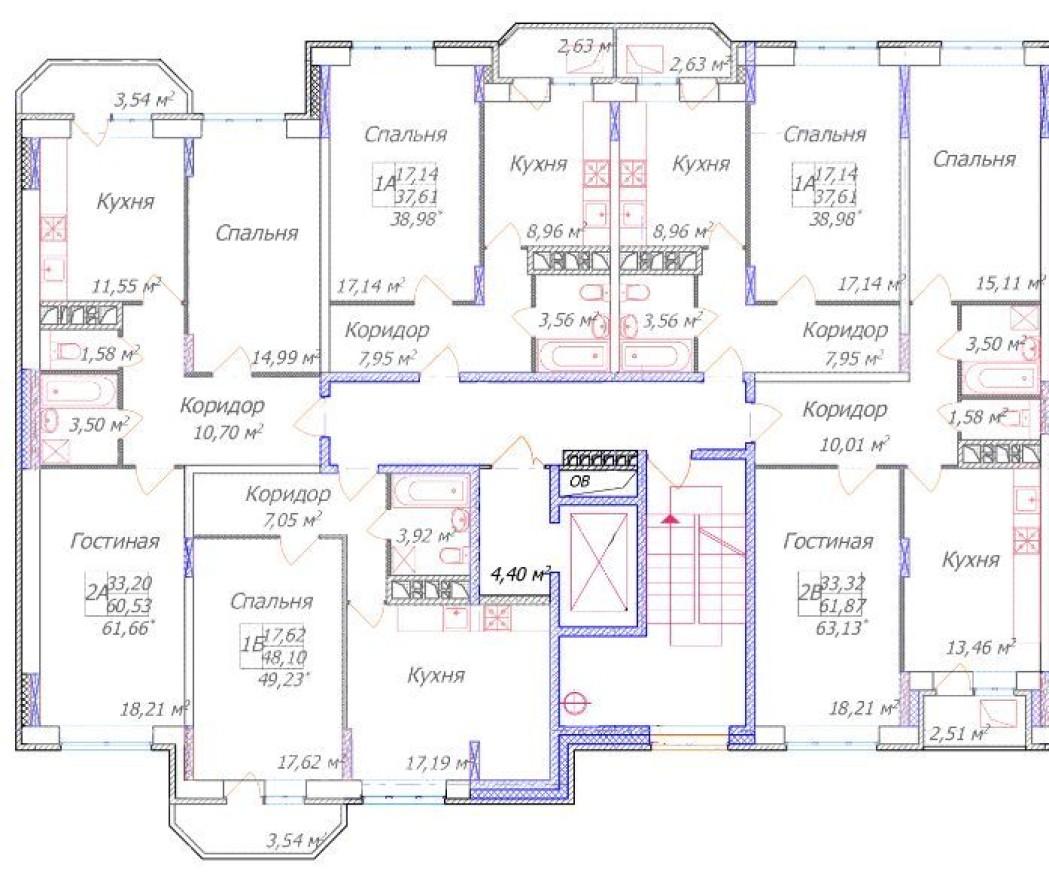 - Квартиры площадью от 38 до 75,44 м² с потолками высотой 2,8 м обеспечивают свободу планирования и пространства.