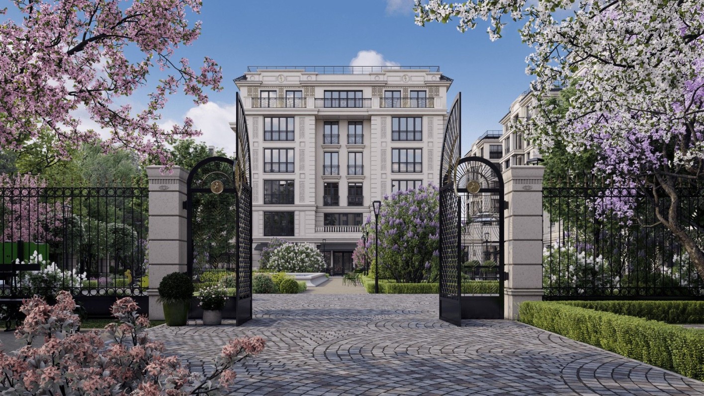 Малоэтажность комплекса – от 3 до 7 этажей – подчеркивает элитарность проекта. В каждом доме не более 10 квартир, всего 2 квартиры на этаже. Трёхсторонне сориентированные квартиры с панорамными окнами в пол, позволяющими стереть границы между внутренним и внешним пространством. Фасады выполнены из светлого натурального камня. Авторский проект ландшафта с фонтанами, парковыми группами, дизайнерским освещением, - дополняют впечатление от архитектурного ансамбля. Вся территория подогреваемая.