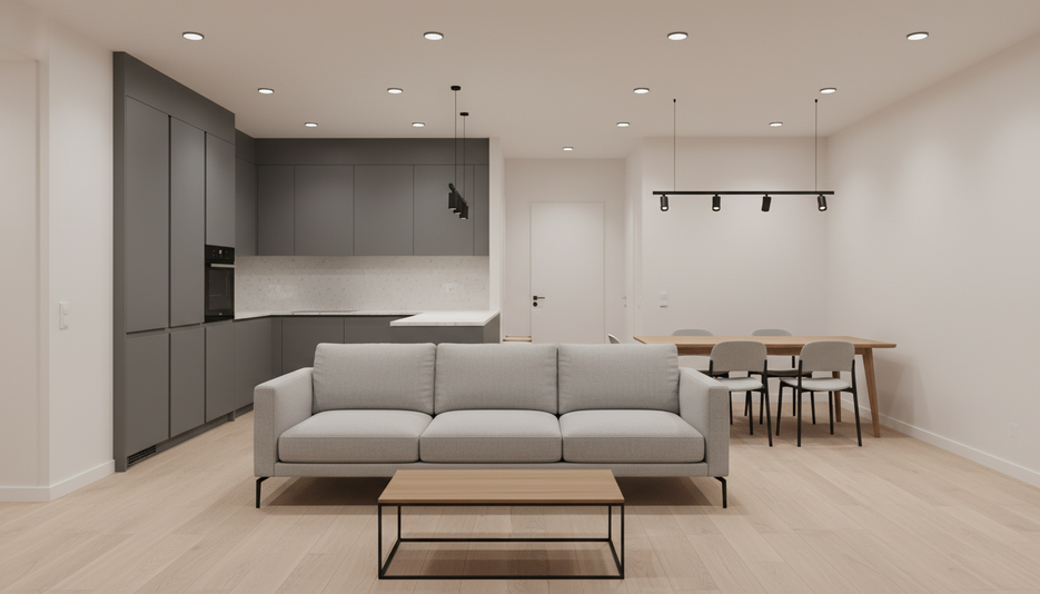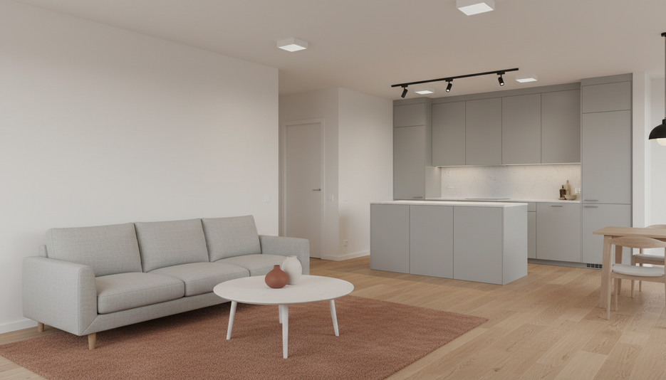 Минималистичный дизайн 3-комнатной квартиры 89.92 м² с качественной отделкой и мебелью для семьи с двумя детьми в ЖК Ленинградский квартал.