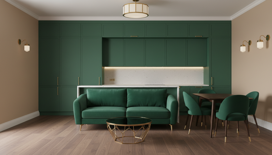 Дизайн 1-комнатной квартиры 37.4 м² в ЖК Северный 2 в стиле Арт-деко для семьи с ребёнком с элегантной мебелью и...