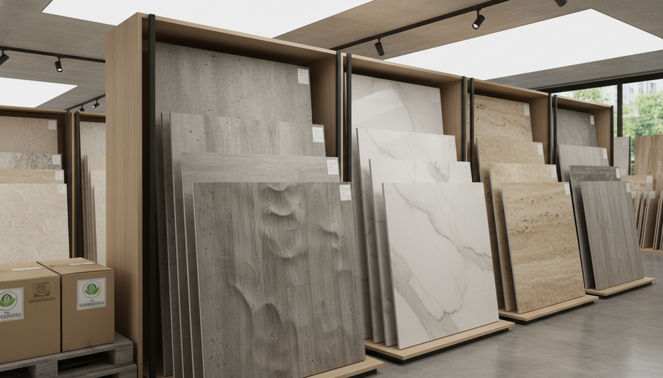 Ключевой материал для отделки в 2025 году — плитка. Российский рынок показывает устойчивый спрос на крупноформатную плитку (60×120 и 120×240 см), цифровую печать с 3D-текстурами и решения с экологическими сертификатами. Поставщики увеличили номенклатуру гиперреалистичных фактур (камень, бетон, дерево), что позволяет минимизировать отделочные работы по декору и упростить подбор решений для типовых планировок.