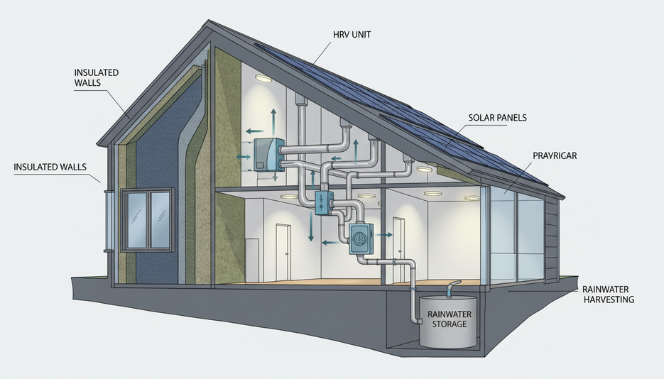 Устойчивые здания объединяют технические и организационные решения, направленные на уменьшение потребления ресурсов и влияние на климат. Основные компоненты: